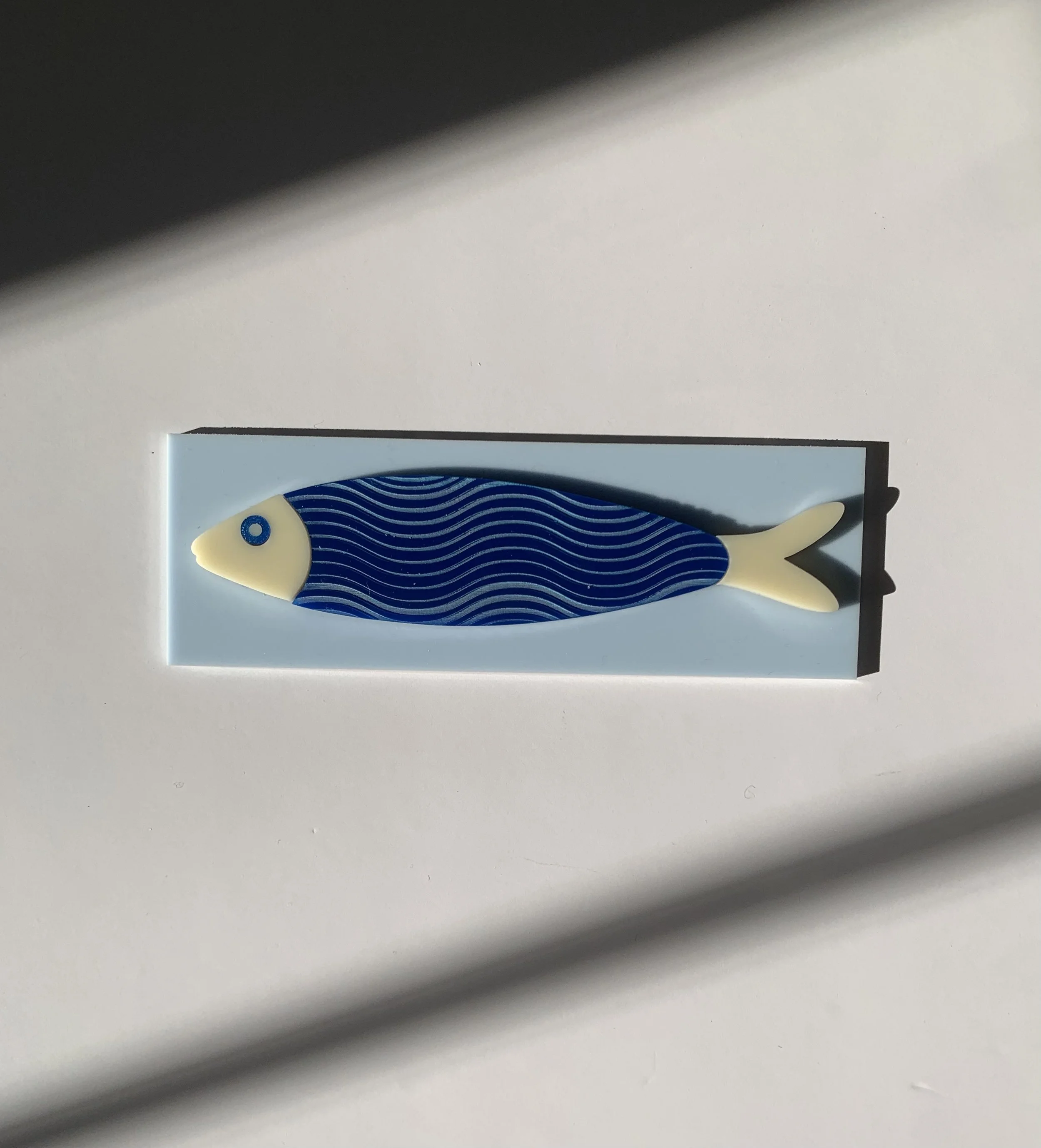 Onda Azul, draws inspiration from Portugal’s coast, its beaches, seafood, and maritime history, including its record-breaking surf and cultural connection to sardines. Using blues and ivory with shimmer acrylic, I experimented with layering to create sardine border patterns and abstract wave tiles with a subtle 3D effect.